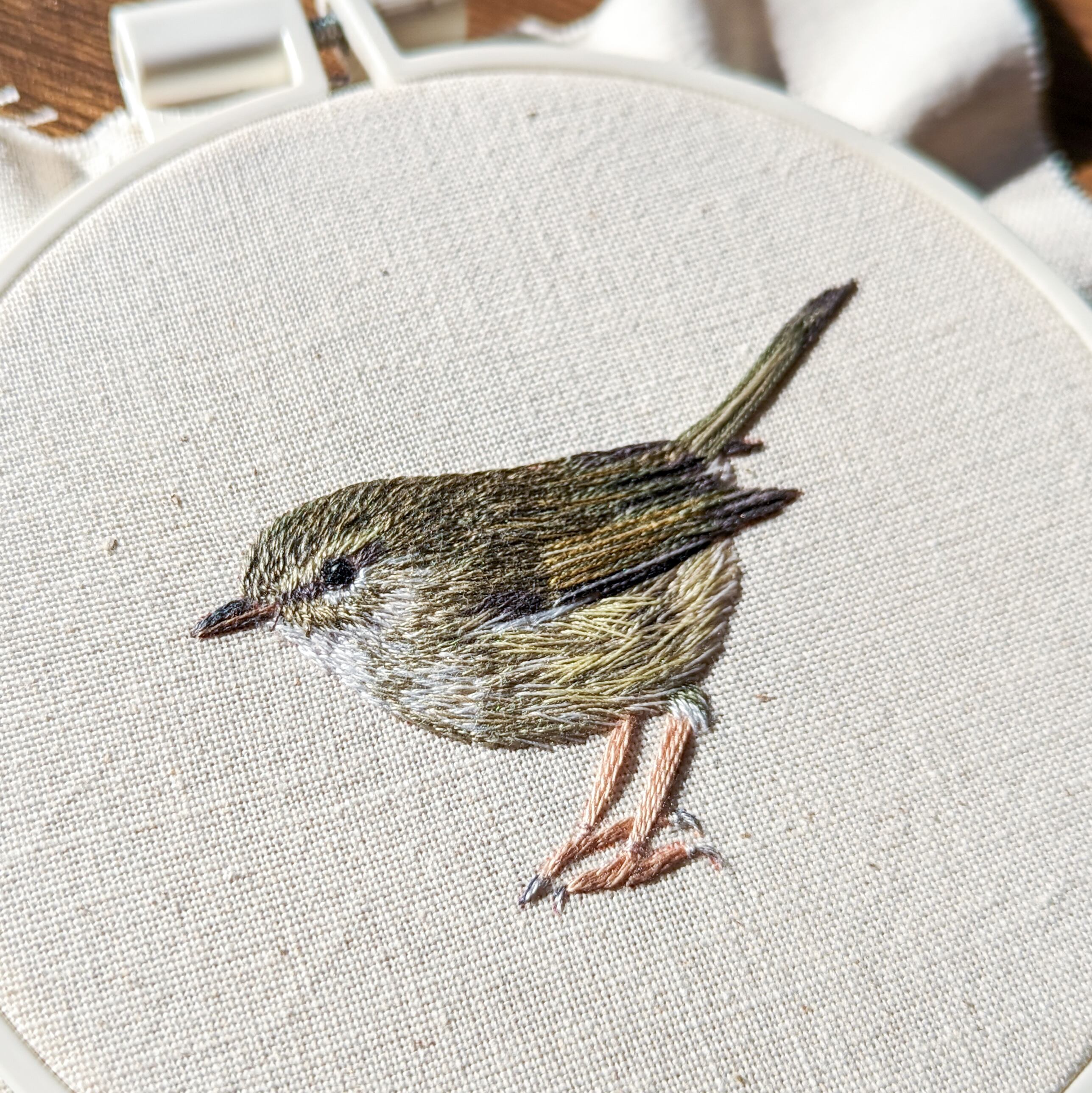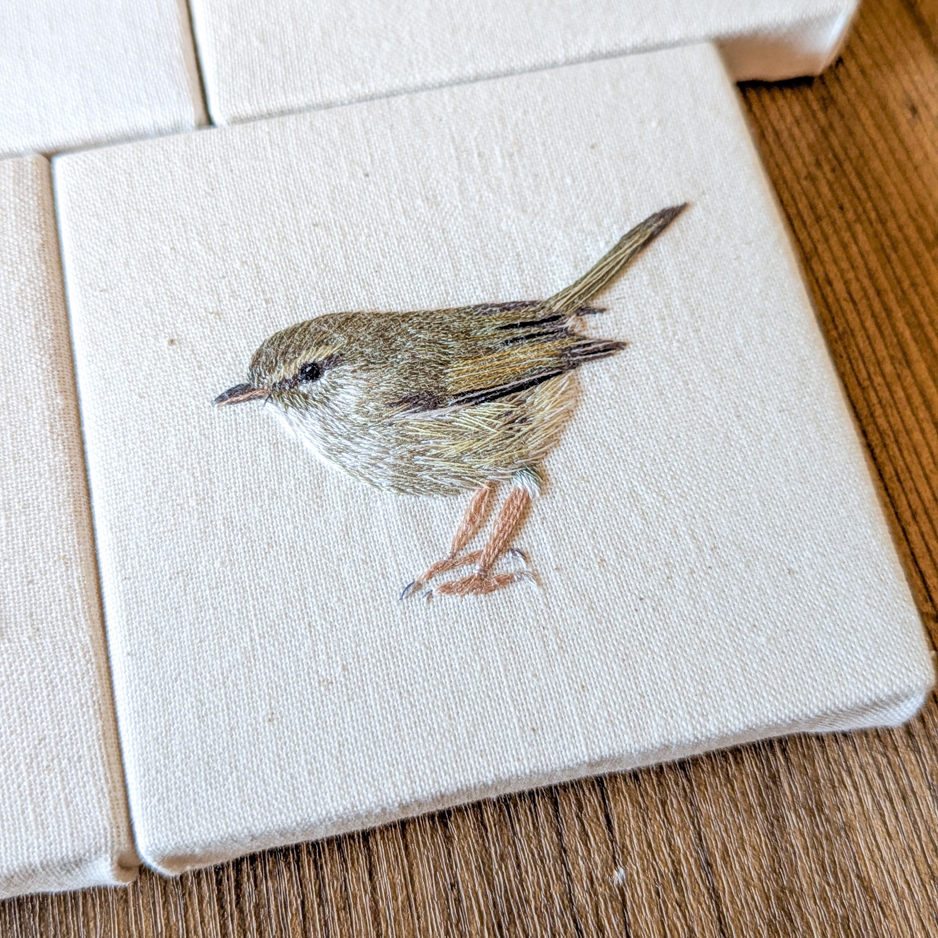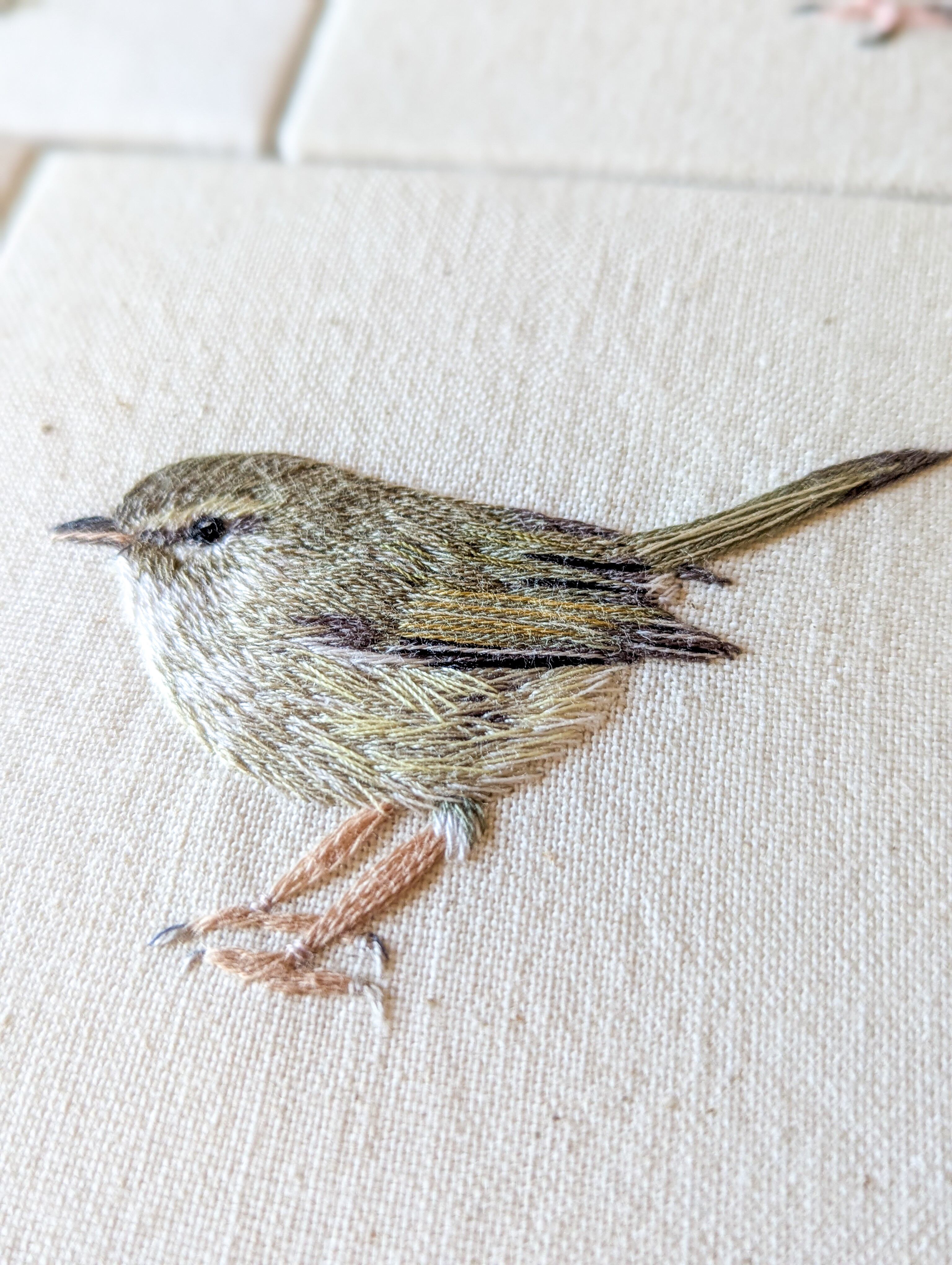 初単著本の『美しい野鳥刺しゅう』のモデルとなったウグイスさん。